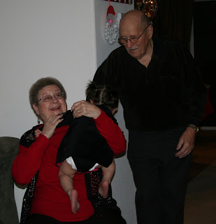 Great shot of Chloe climbing Grandma-Great like a tree! I'm surprised that Mom was able to hang onto her....I bet Chloe had no intention of letting go!!!